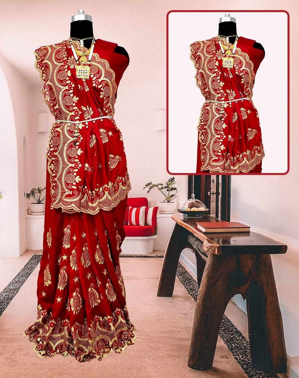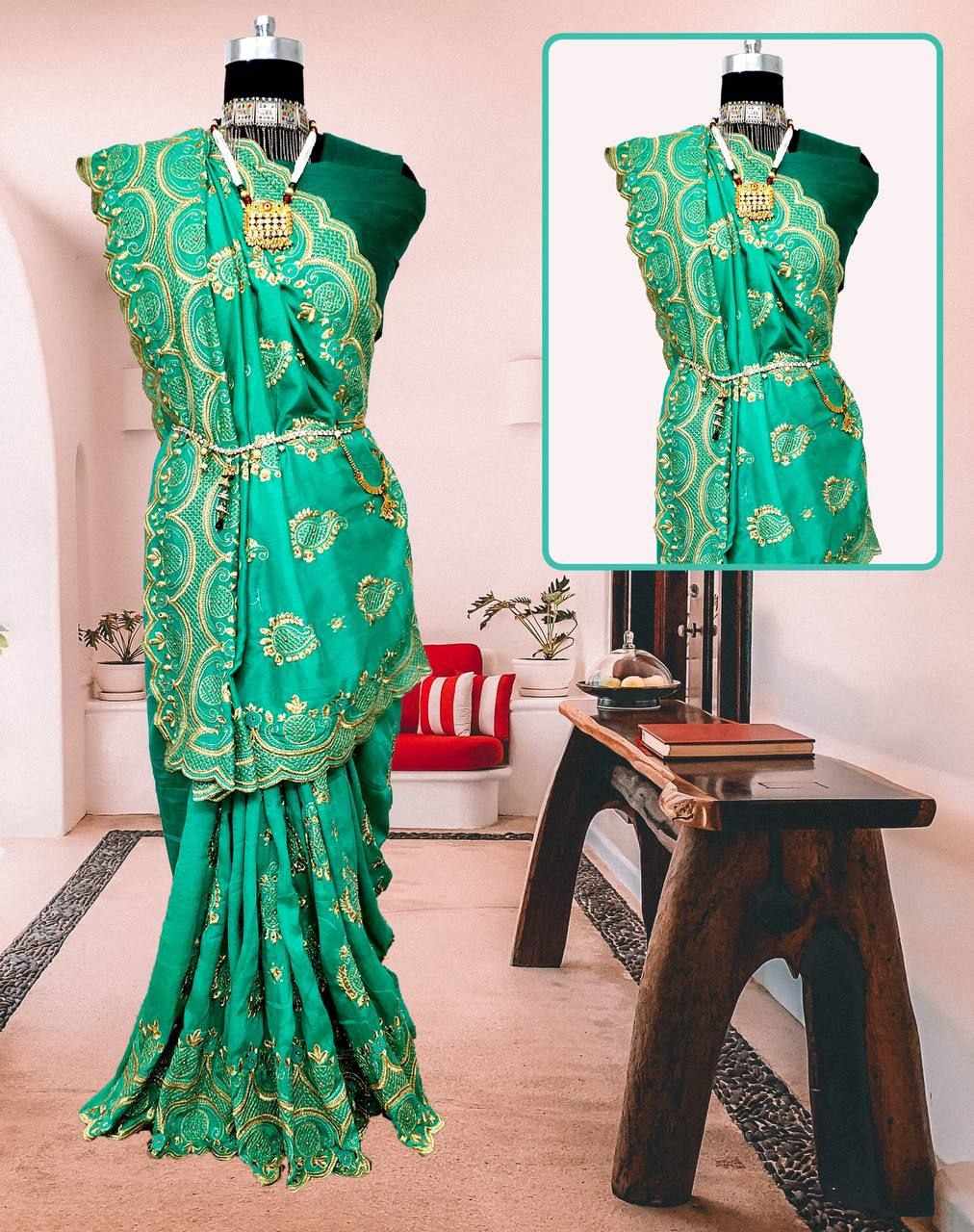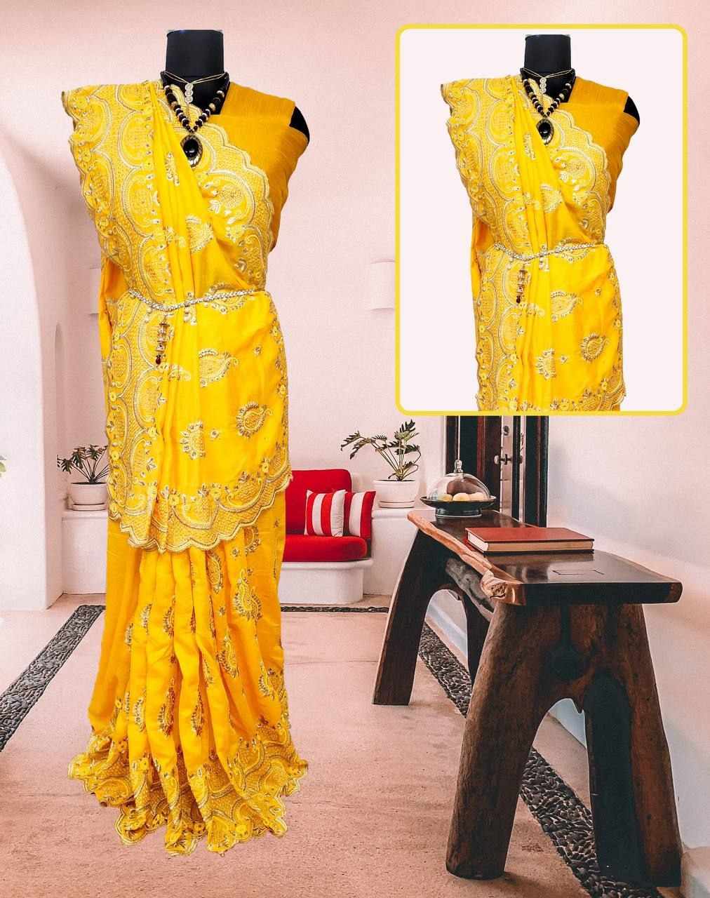 Embroidery work full saree with Cutwork on Border*