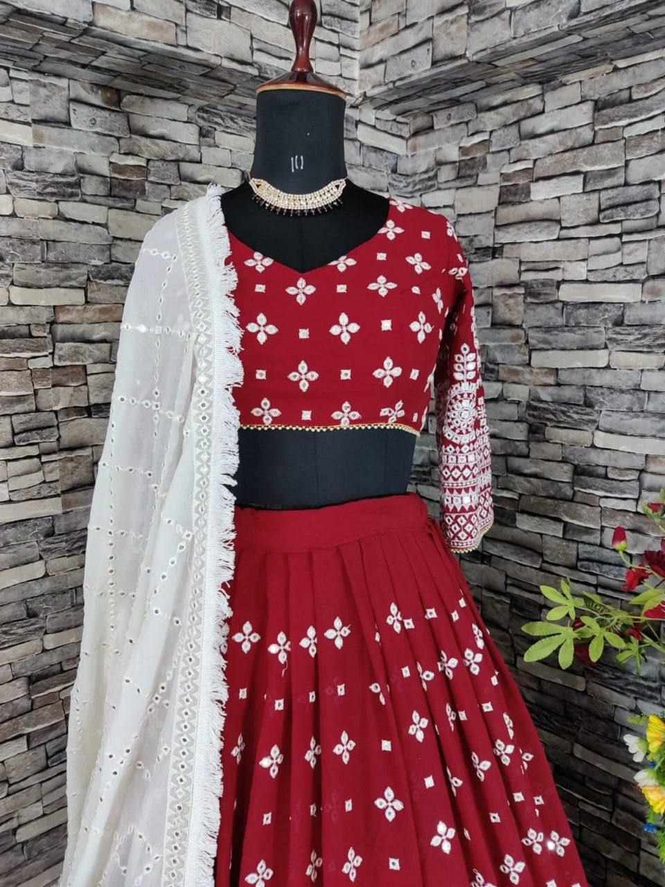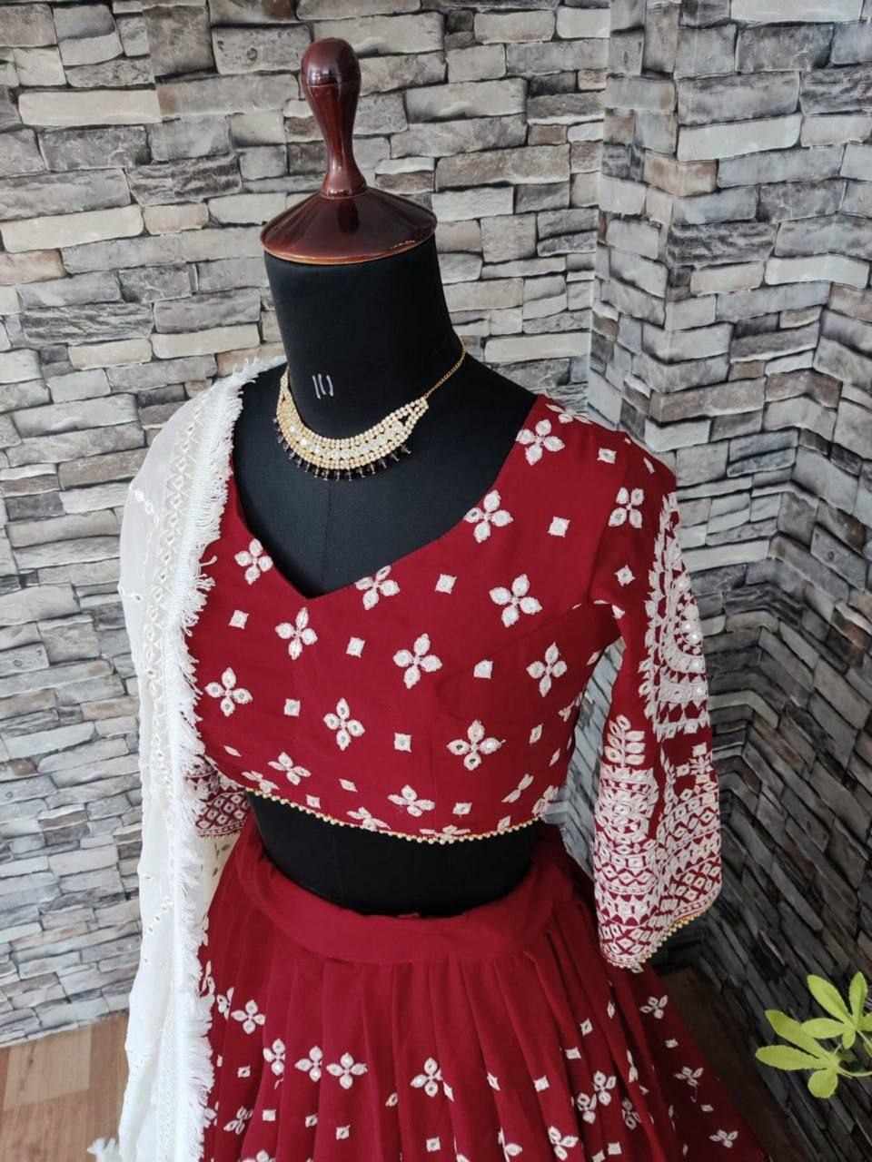 *PRESENT MAROON COLORED DESIGNER EMBROIDERED SEQUINS WORK LEHENGA CHOLI*