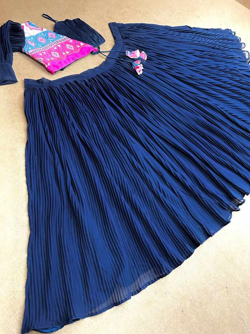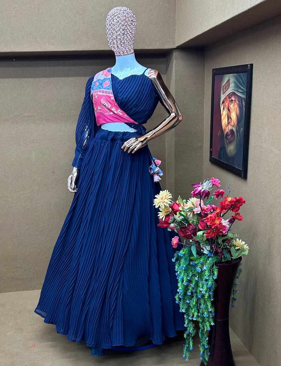 _FABRIC : *Faux Gorgette Silk With Micro Silk with 6.20meter Flair Come With 41-42inch size and Semi stiched*_