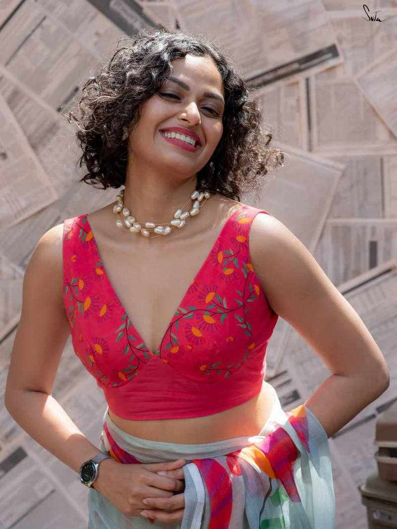 Saree Fabric: Premium Linen Cotton with beautiful digital print and elegant handmade cotton tassels