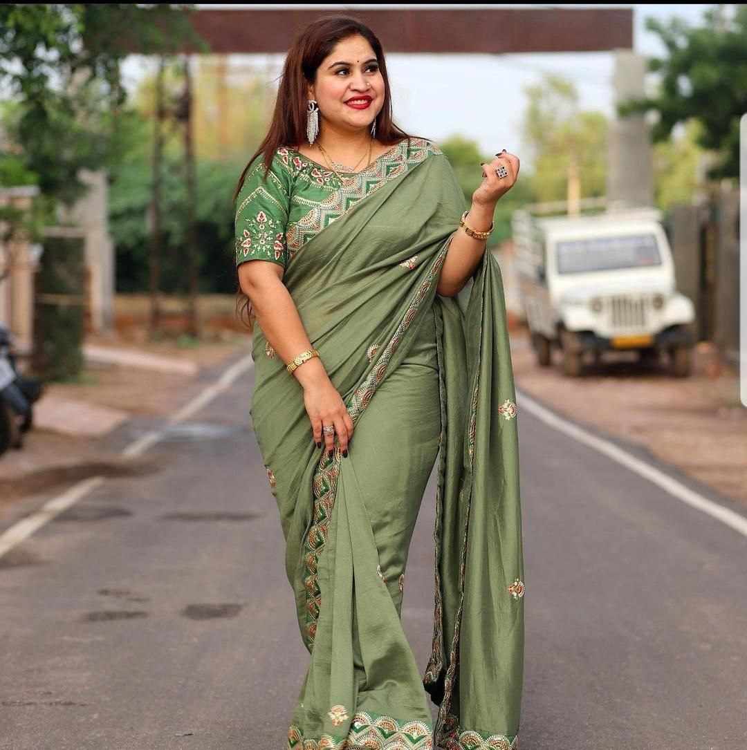 *SAREE :- Vichitra Silk With Embroidery Multi Thread And Zari Work*