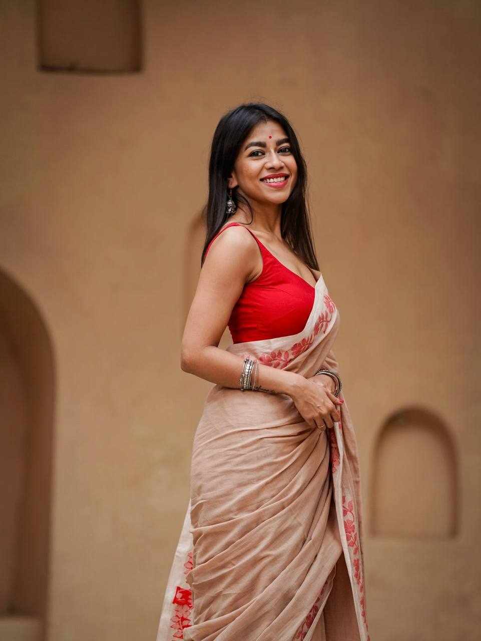 Elegant Linen Cotton Digital Print Saree