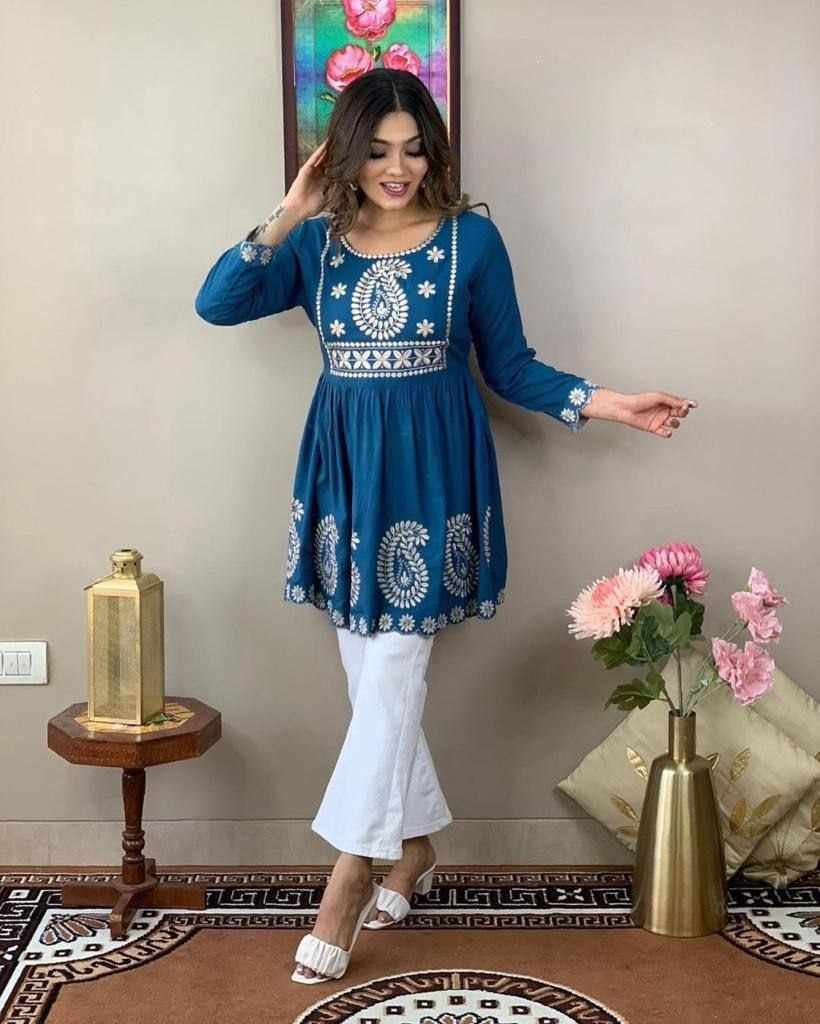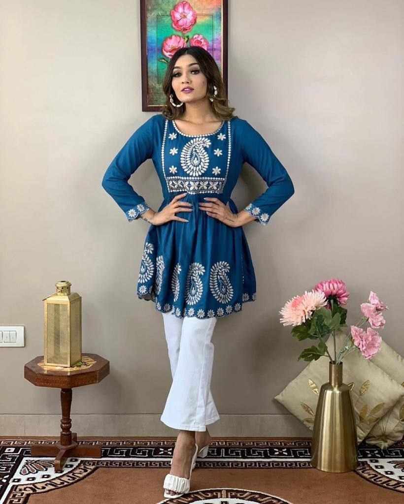 Premium Reyon cotton Top with beautiful embroidery work on yoke & Reyon pent