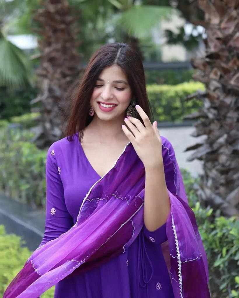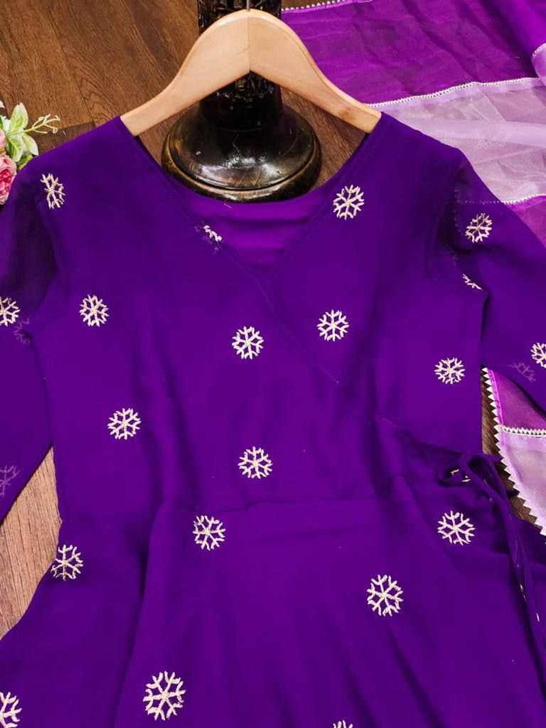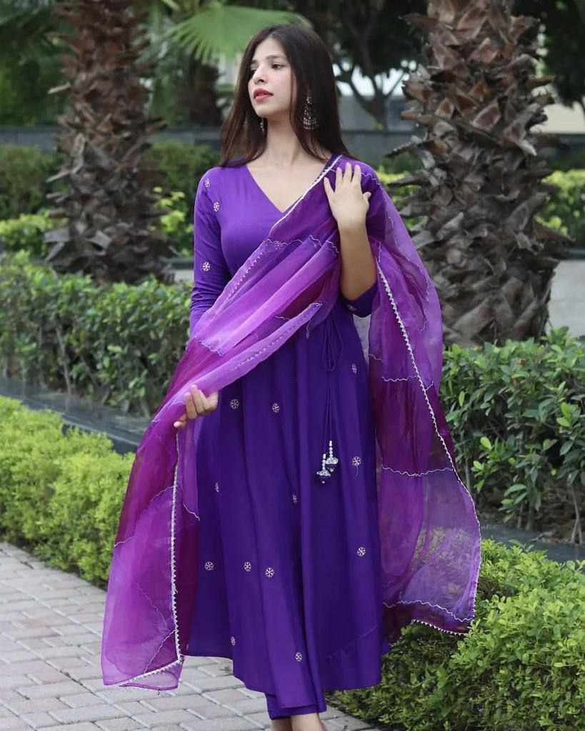 Upcoming festival special embroidery butti gown with double Color organza dupatta with gotta lace