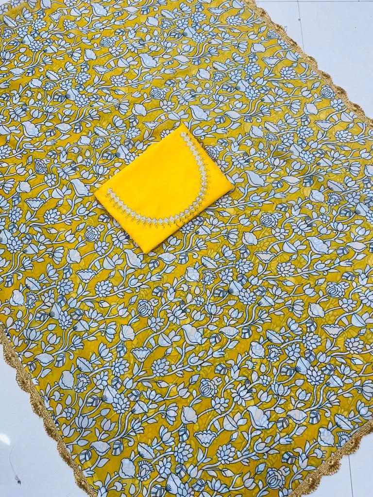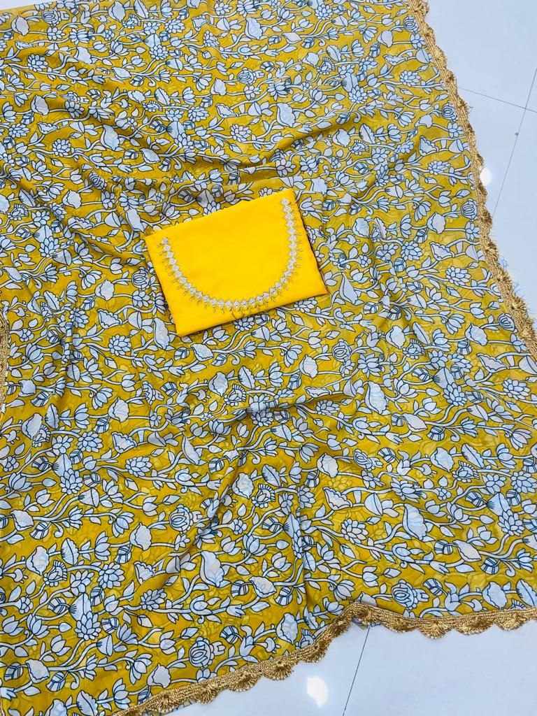 *FABRIC* : Beautiful Pure Georgette Saree with Print on All Side Attached Heavy Moti Lace.
