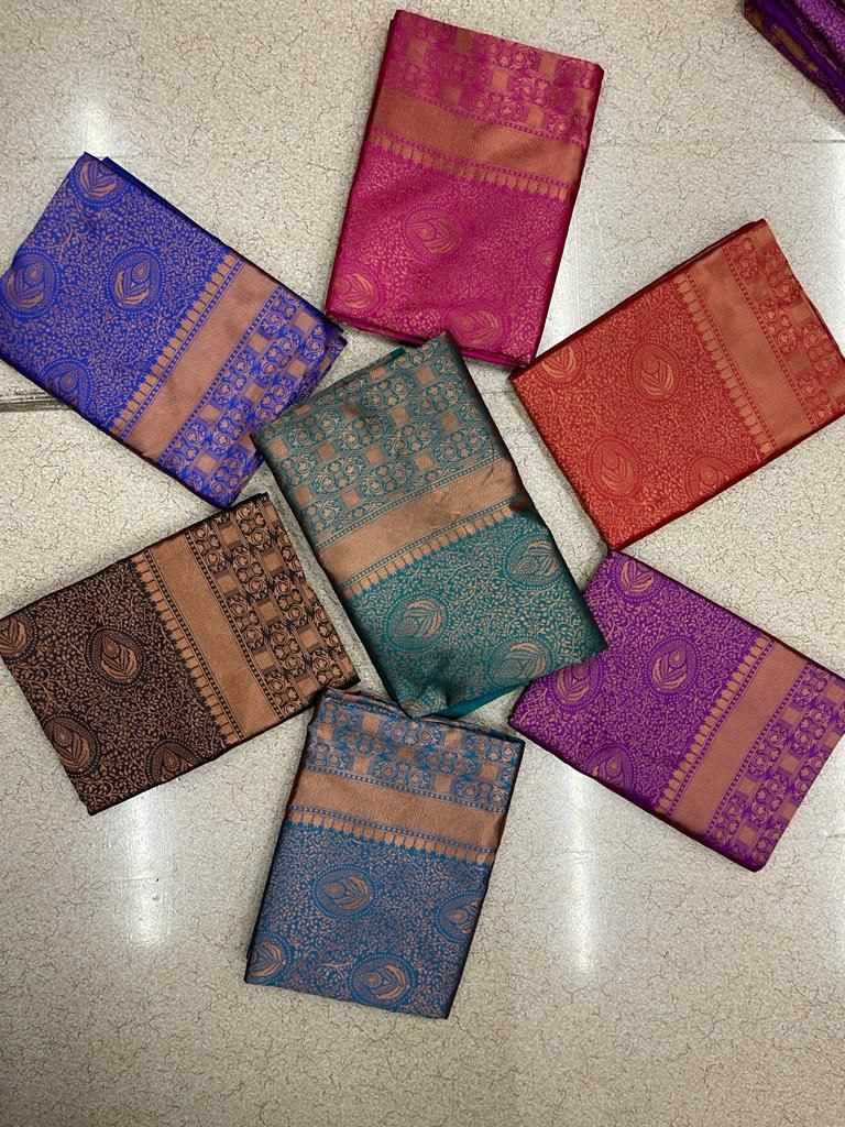 DESIGN : BEAUTIFUL RICH PALLU AND JACQUARD BORDER COPPER WORK ON ALL OVER THE SAREE.*