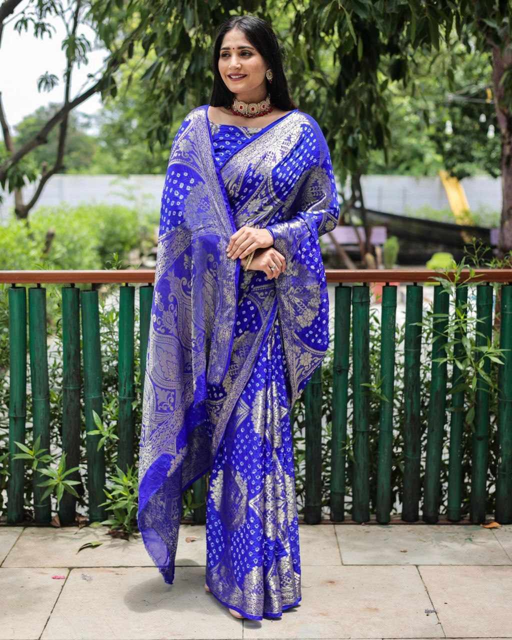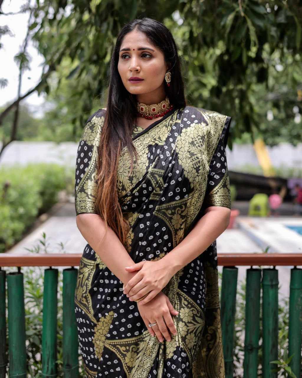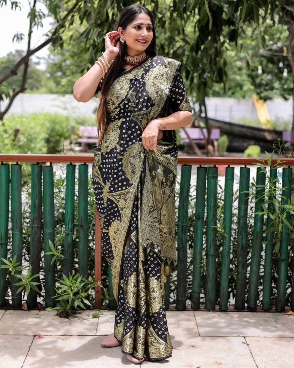 *Pure Gharchola Bandhej silk with Lagdi patta* saree made by *original Bandhej with zari weaving Border with Bandhej Rich * saree with beautiful design and having a Small broad border.