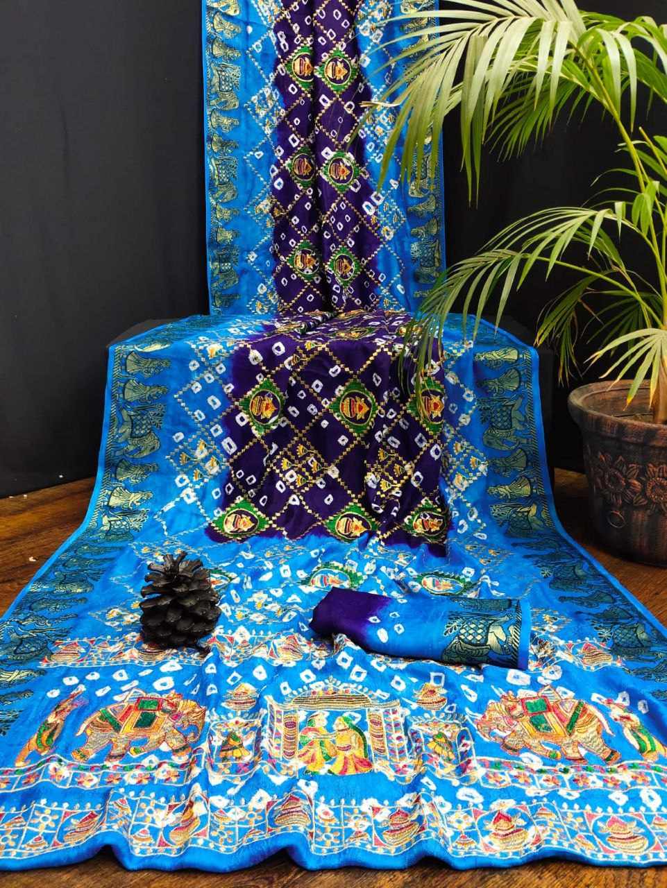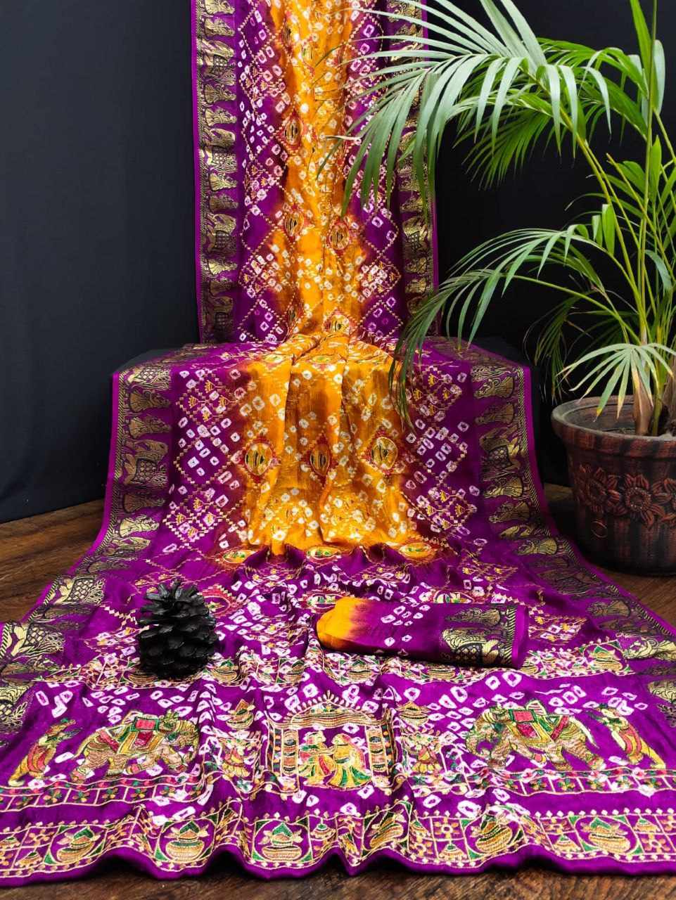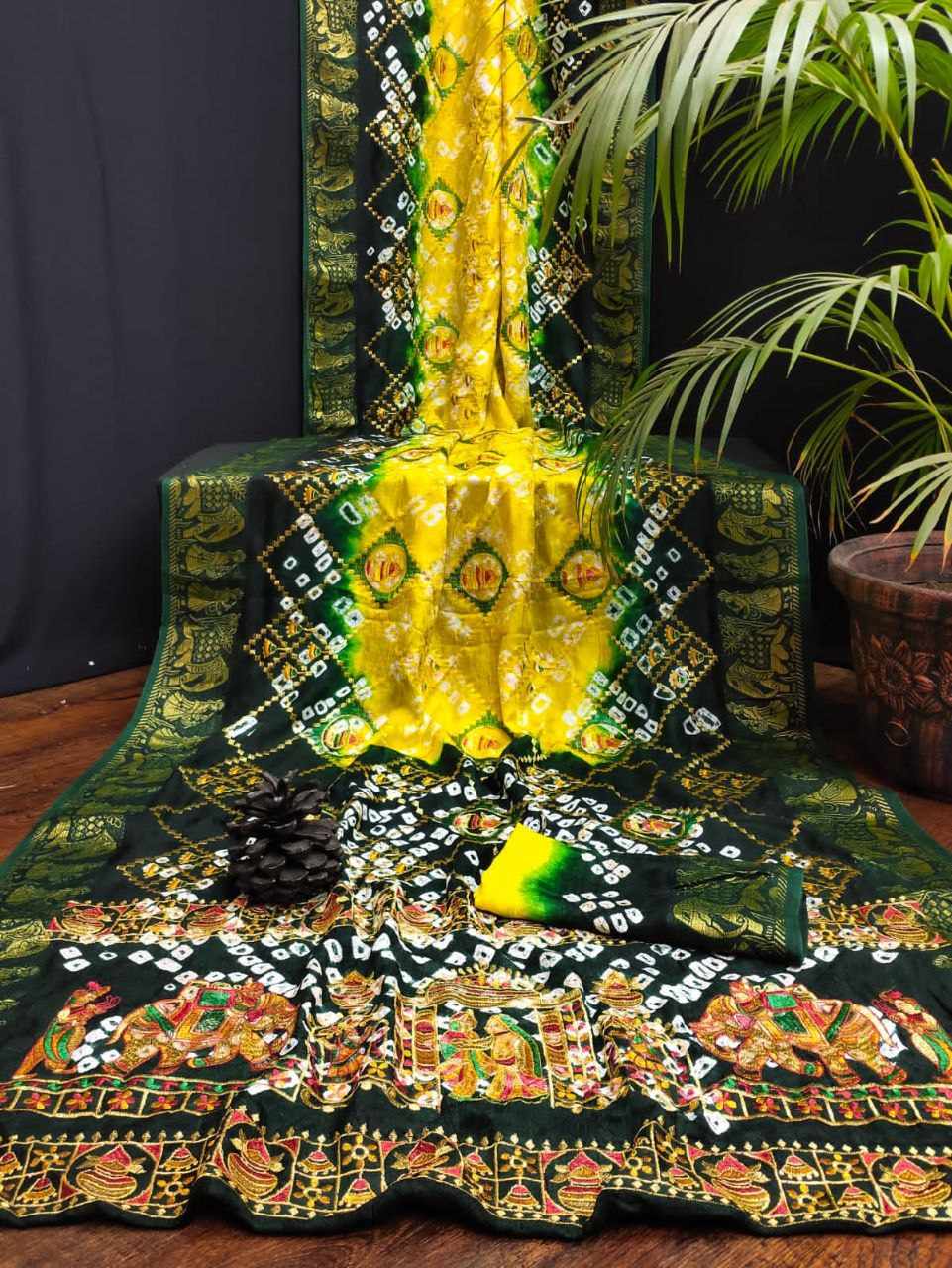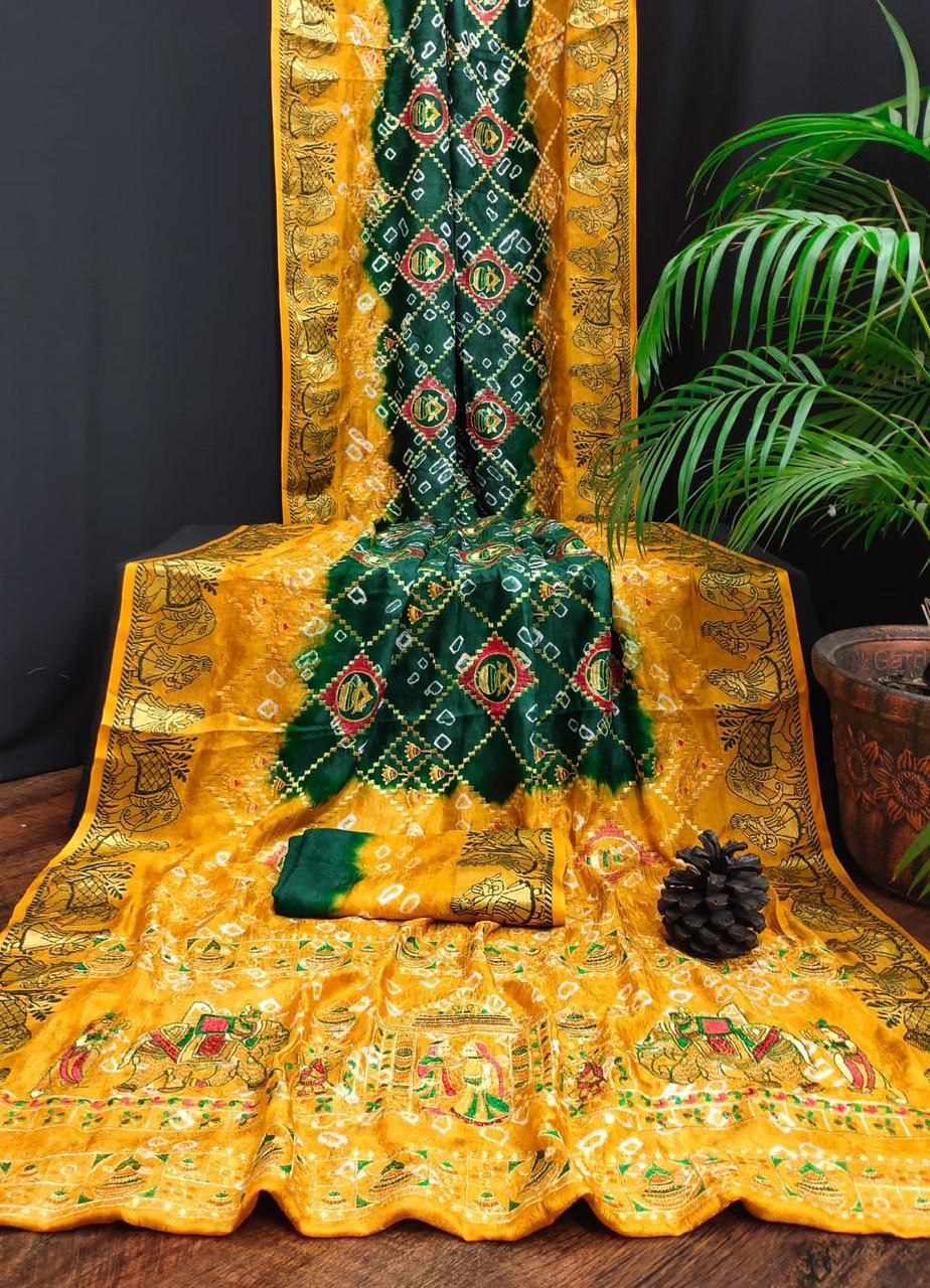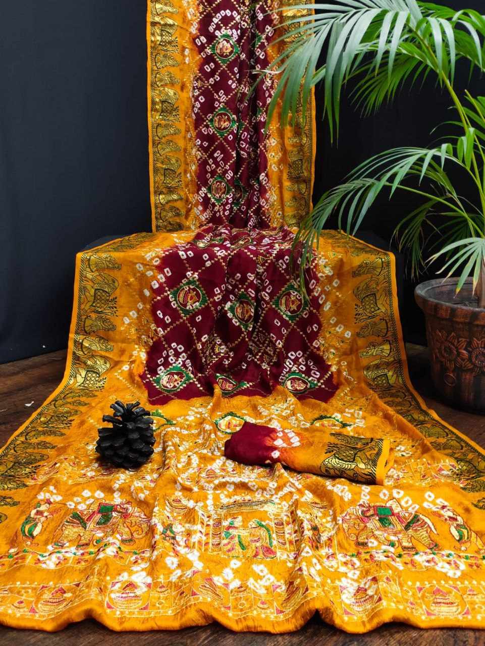 *Pure Bandhej silk* saree made by *original Bandhej with zari weaving Border with Zari Embroidery work Rich Pallu * saree with beautiful design and having a big broad border.