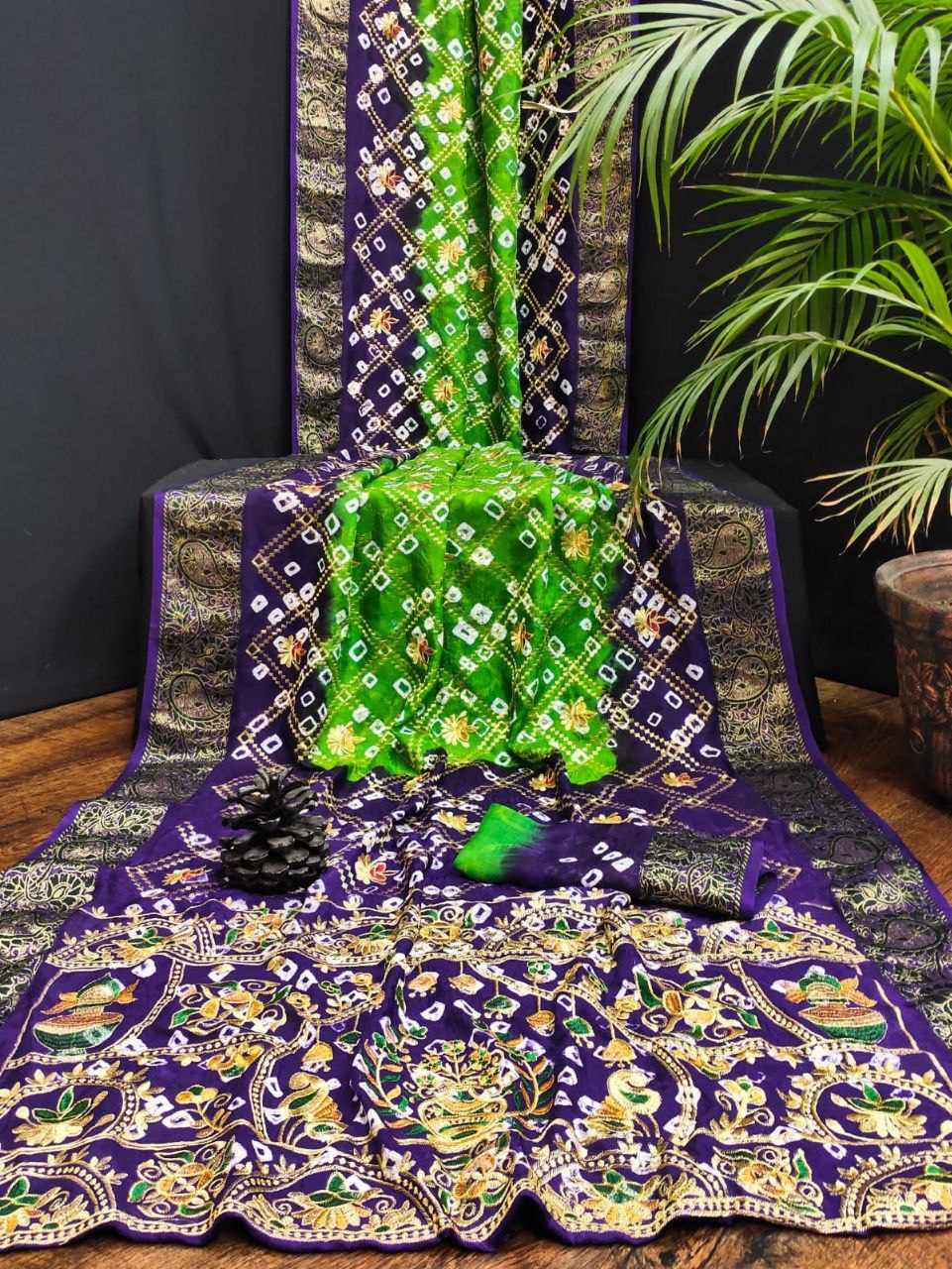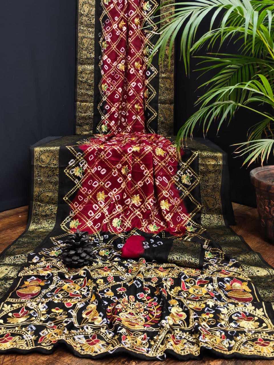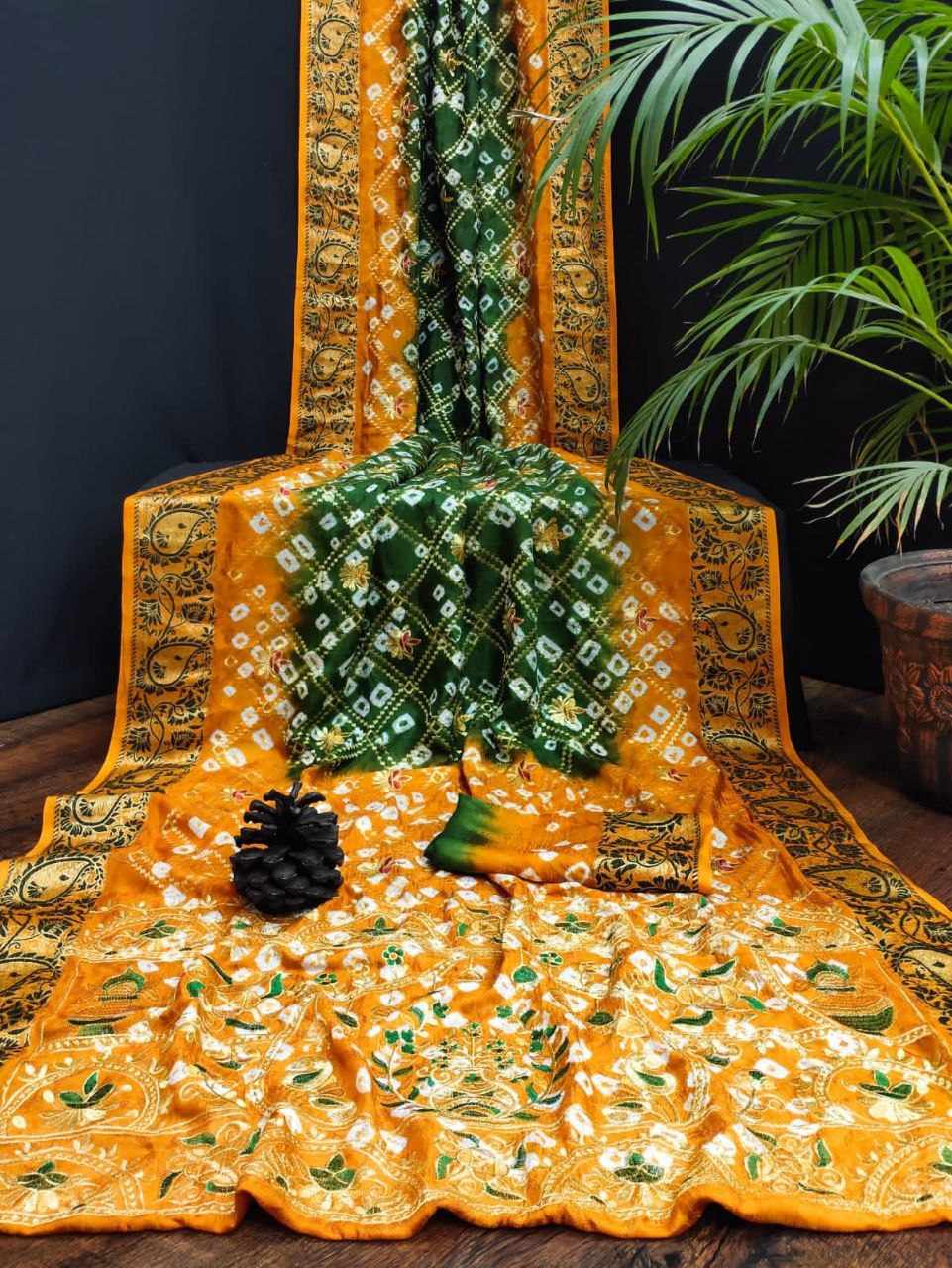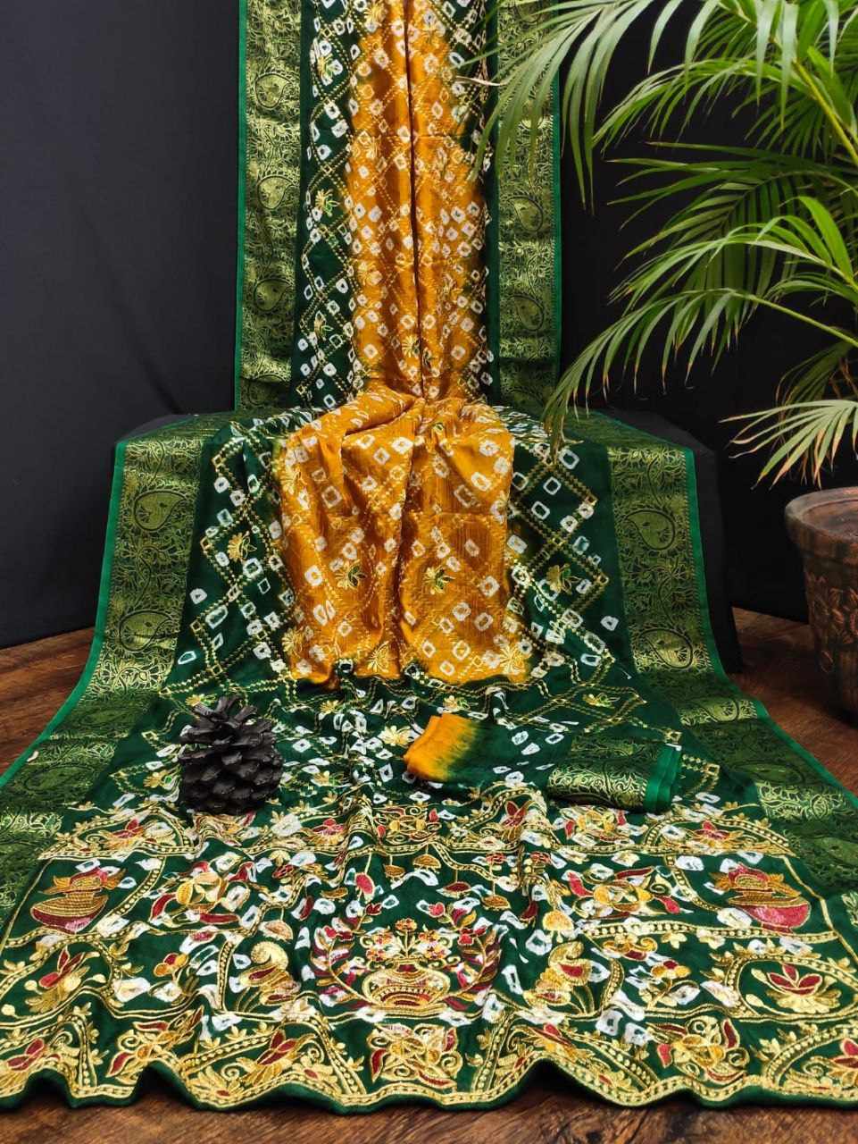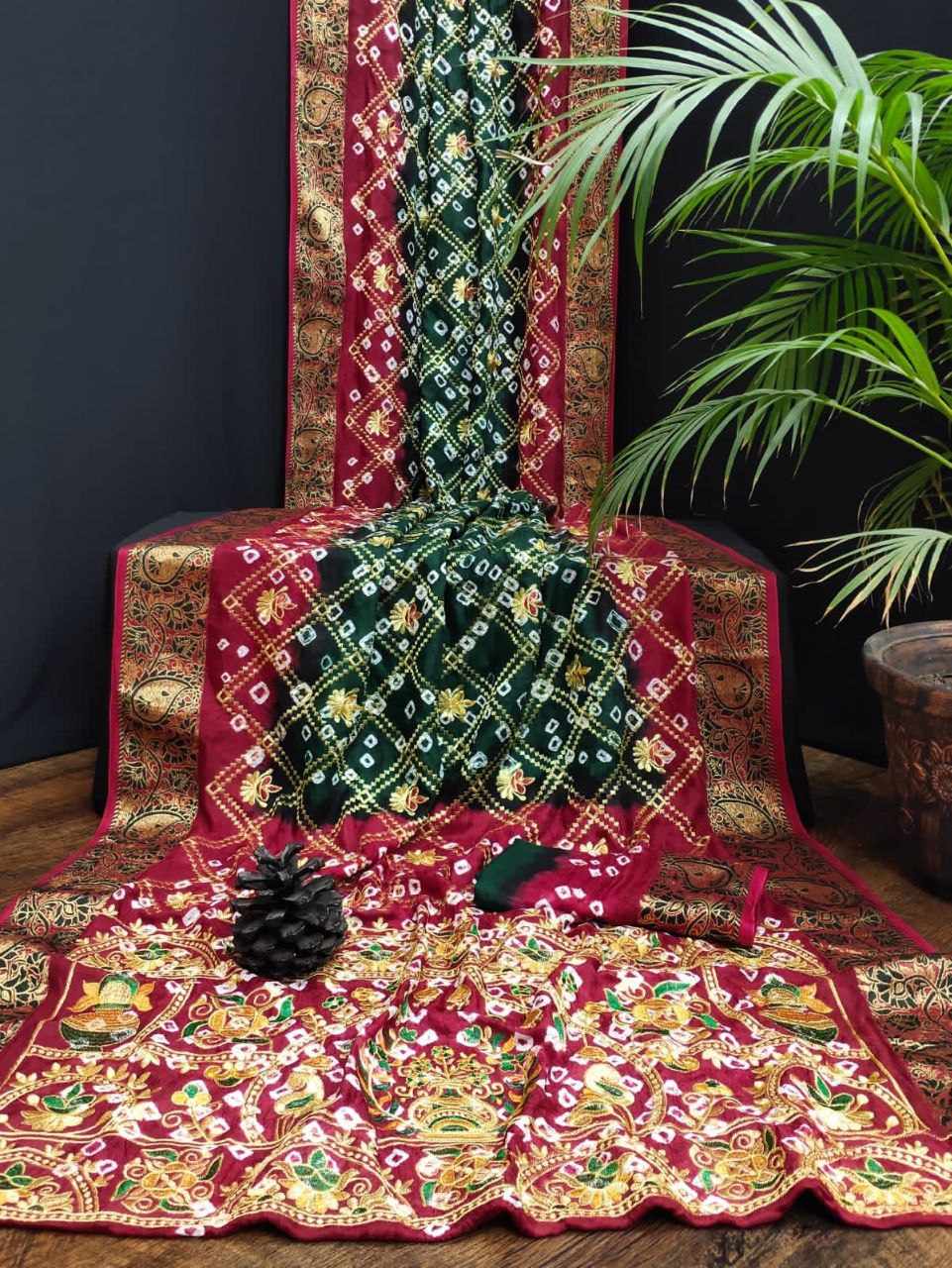 *Pure Bandhej silk* saree made by *original Bandhej with zari weaving Border with Zari Embroidery work Rich Pallu * saree with beautiful design and having a big broad border.