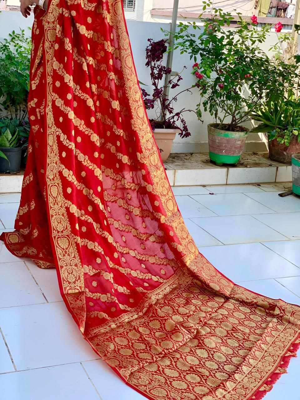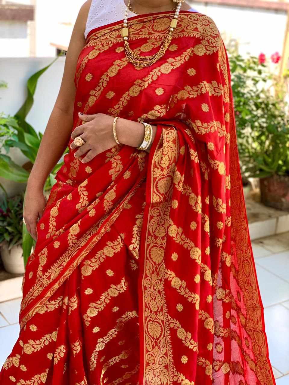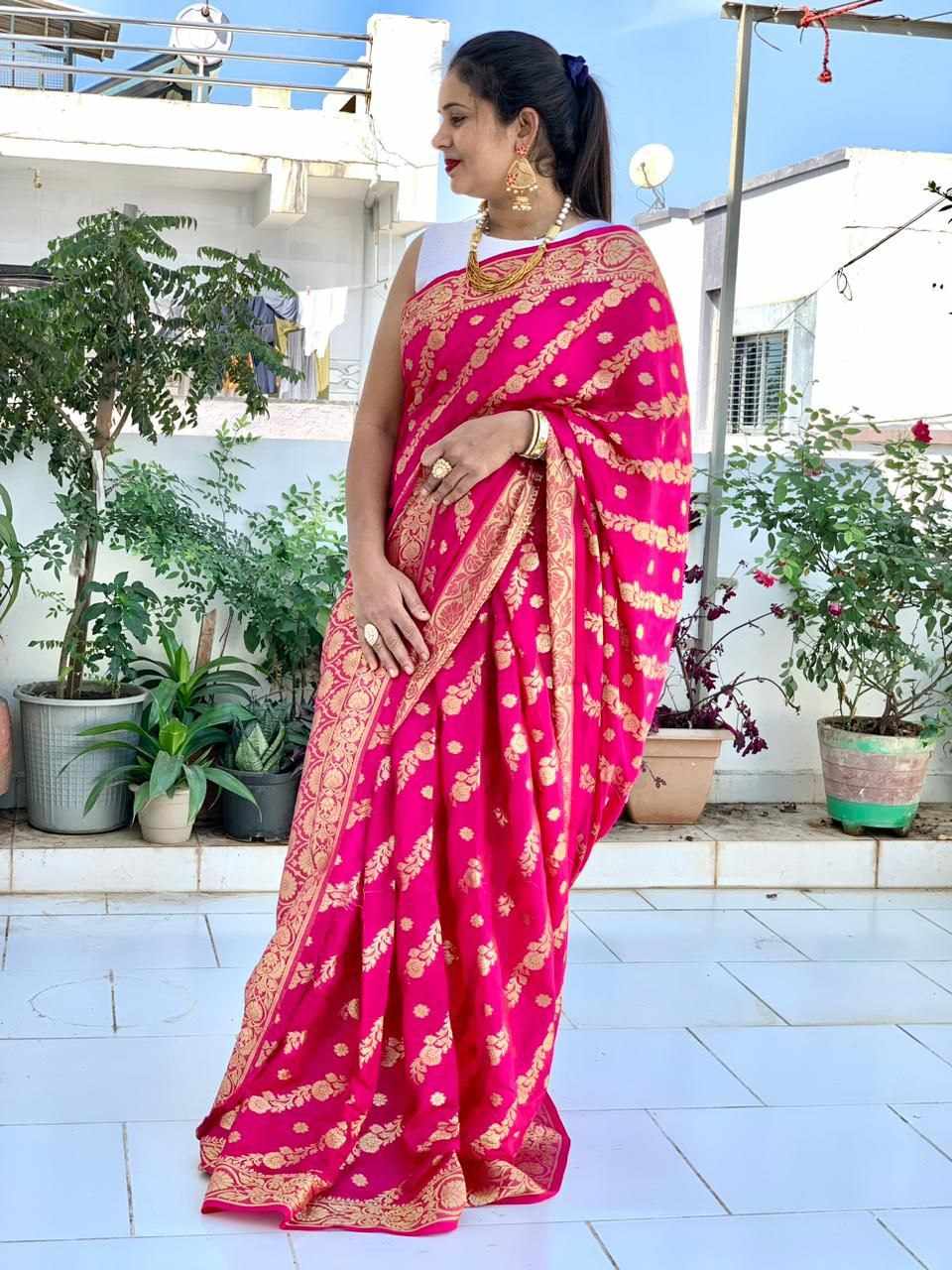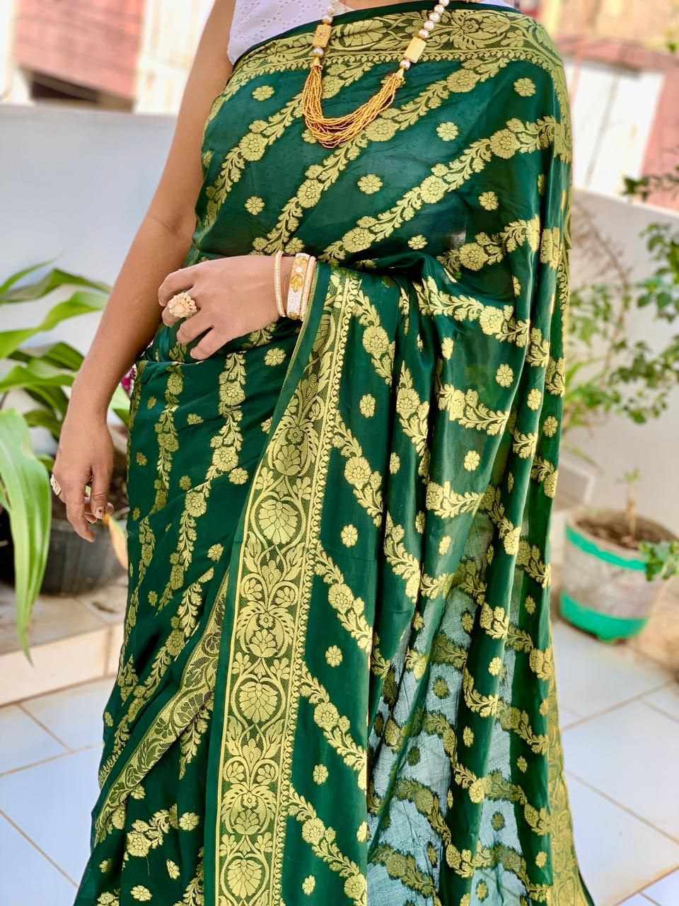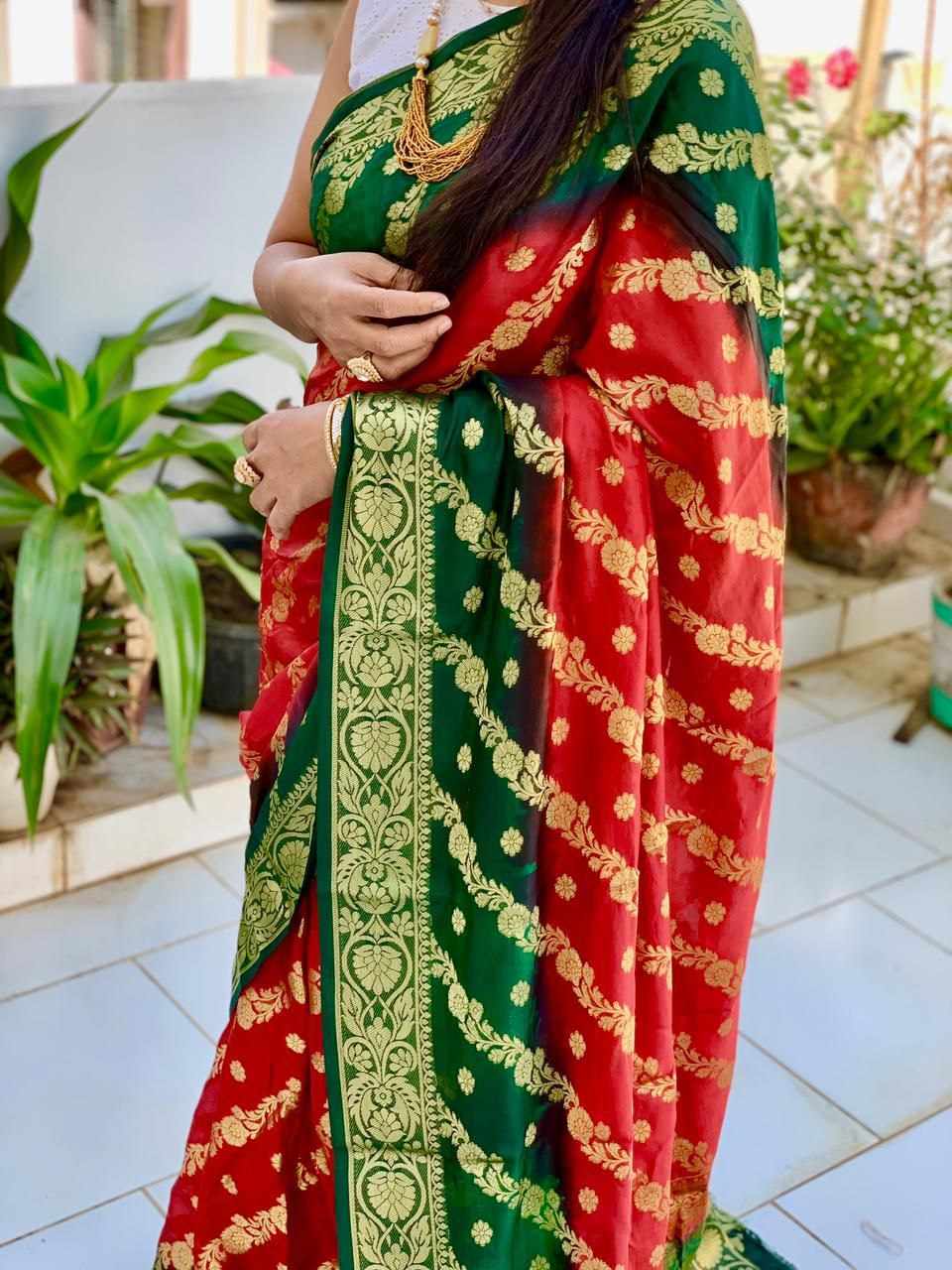 *jaipuri silk* saree made by *with zari weaving all over saree and Border with Zari Weaving Rich Pallu * saree with beautiful design and having a big border.