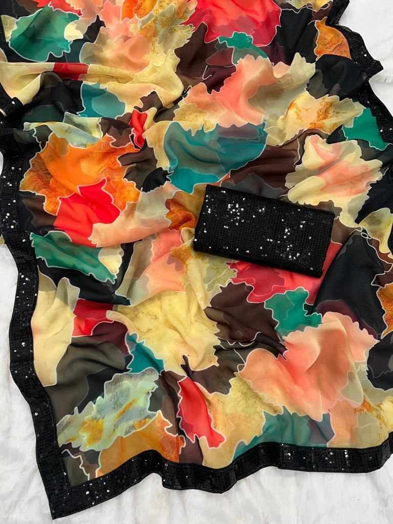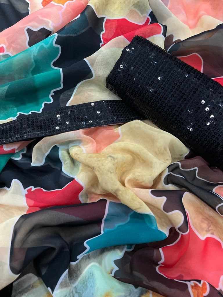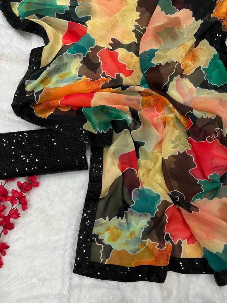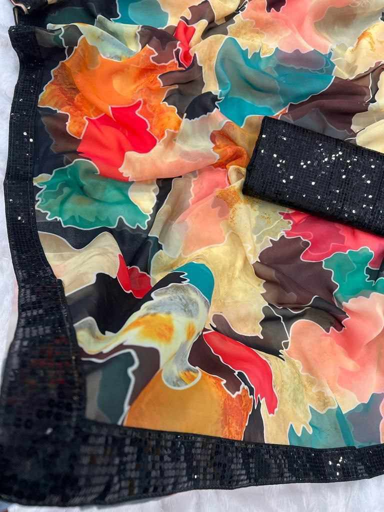 * A mesmerizing and versatile black multi colour that allows you to look trendy but remain classy. sequence embroidery work in saree next occasion on the calendar embrace you with achic and elegant*