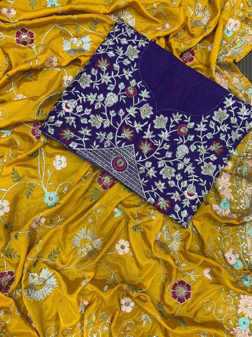 * BLOUSE*- BANGLORI EMBROIDERY SEQUENCE WORK *UNSTICHED*