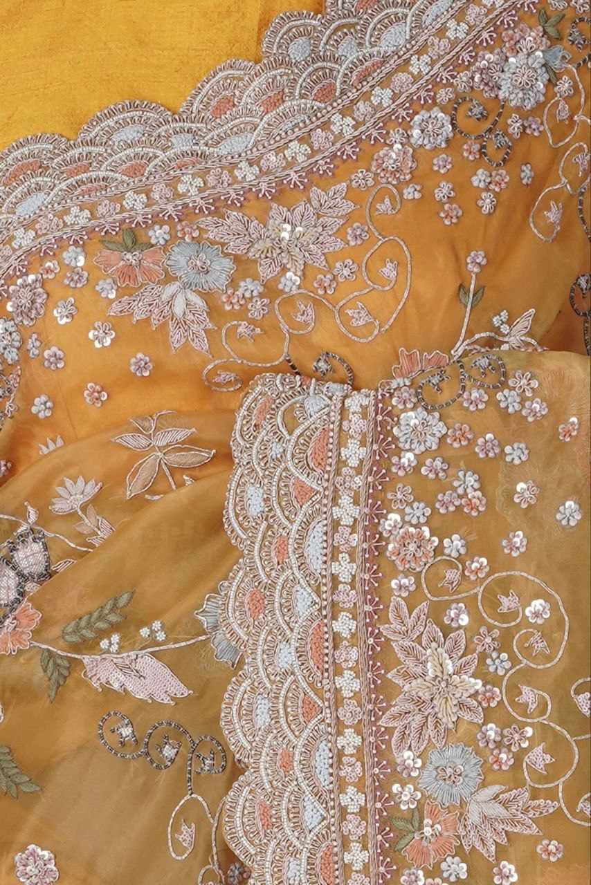 * WORK :* EMBROIDERY SEQUENCE C-PALLU WORK WITH PIPING