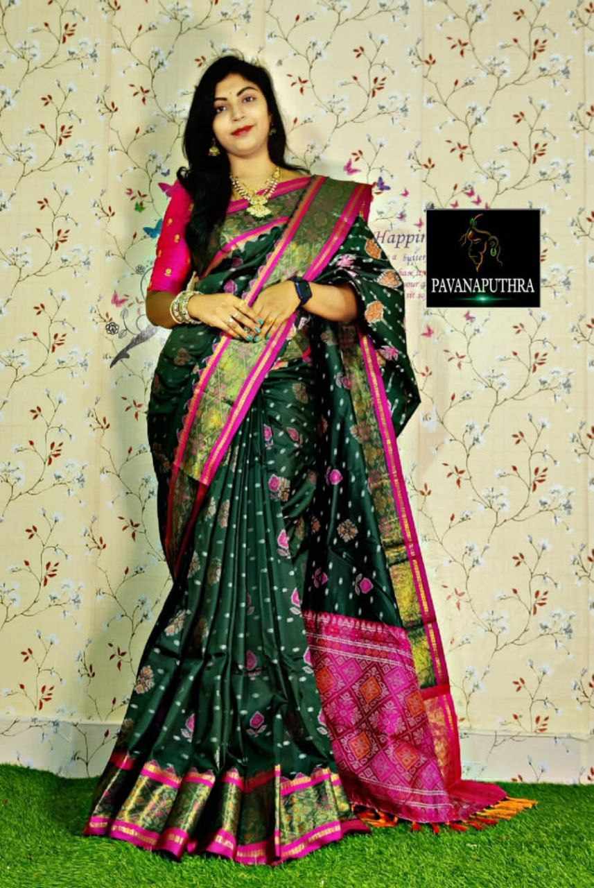 _*PURE PATOLA SILK SAREE WITH PAITHANI AND PATOLA FUSION ALL OVER CONTRAST PATOLA WEAVED WITH CONTRAST MEENAKARI AND RICH PALLU WITH TASSELS ATTACHED*_