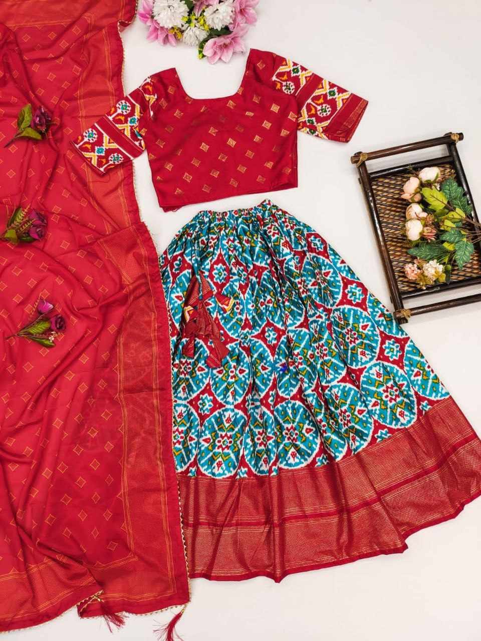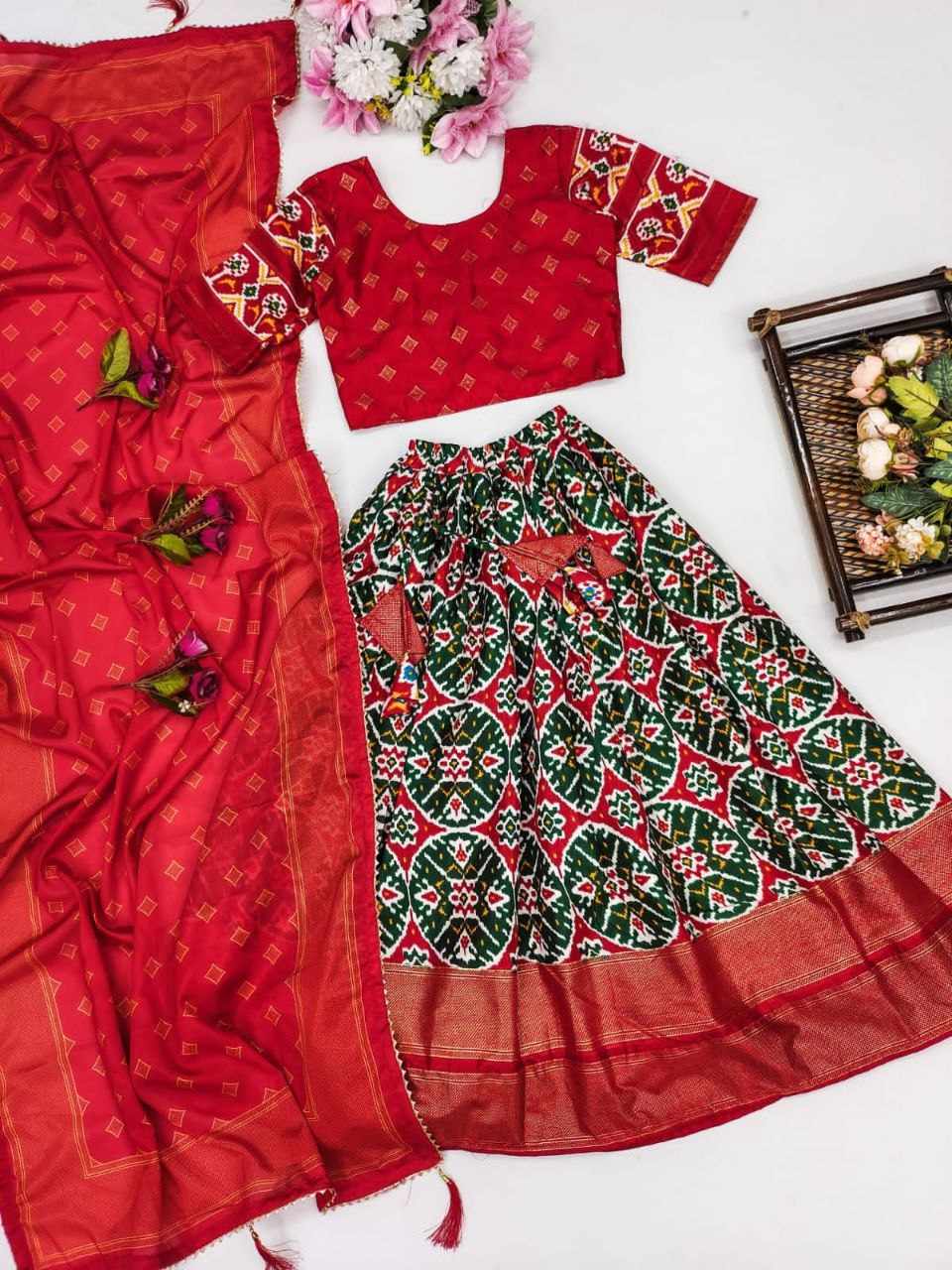 *New Trending Zari Gola Foil-Work Patoda Silk Stitched Lahenga Choli with Dupatta For Marriage/Festive Season*