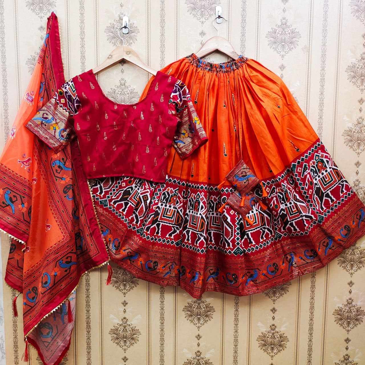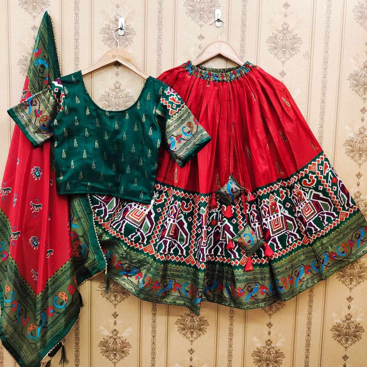 *New Trending Zari Foil-Work Patoda Silk Stitched Lahenga Choli with Dupatta For Marriage/Festive Season*