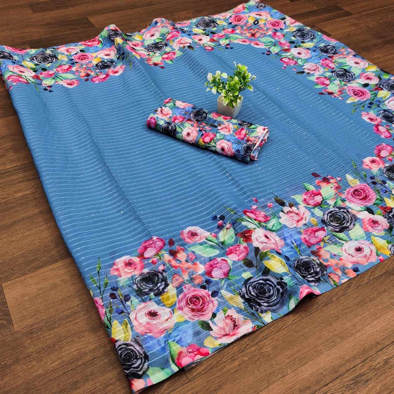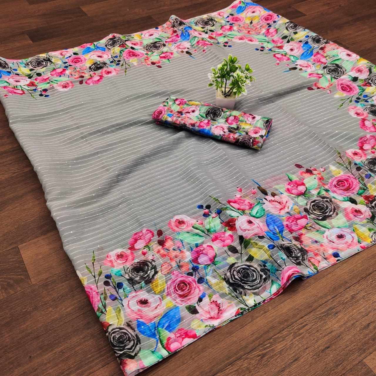*GEORGETTE 2MM SIQVENCE FULL WORK AND UNSTITCHED BLAUSE AND PRINTED SAREES C PALLU CONSEPT NICE LOOKING*