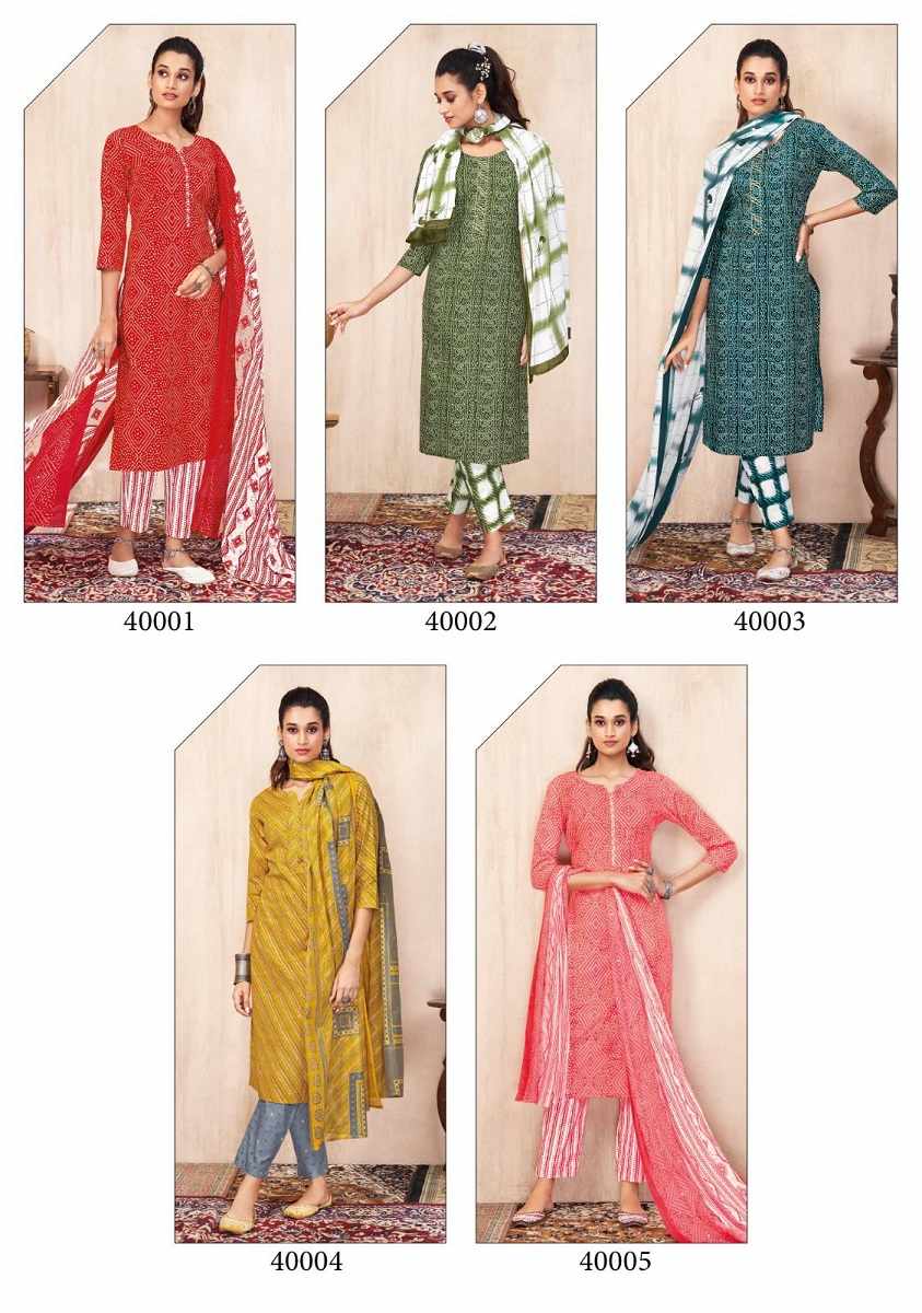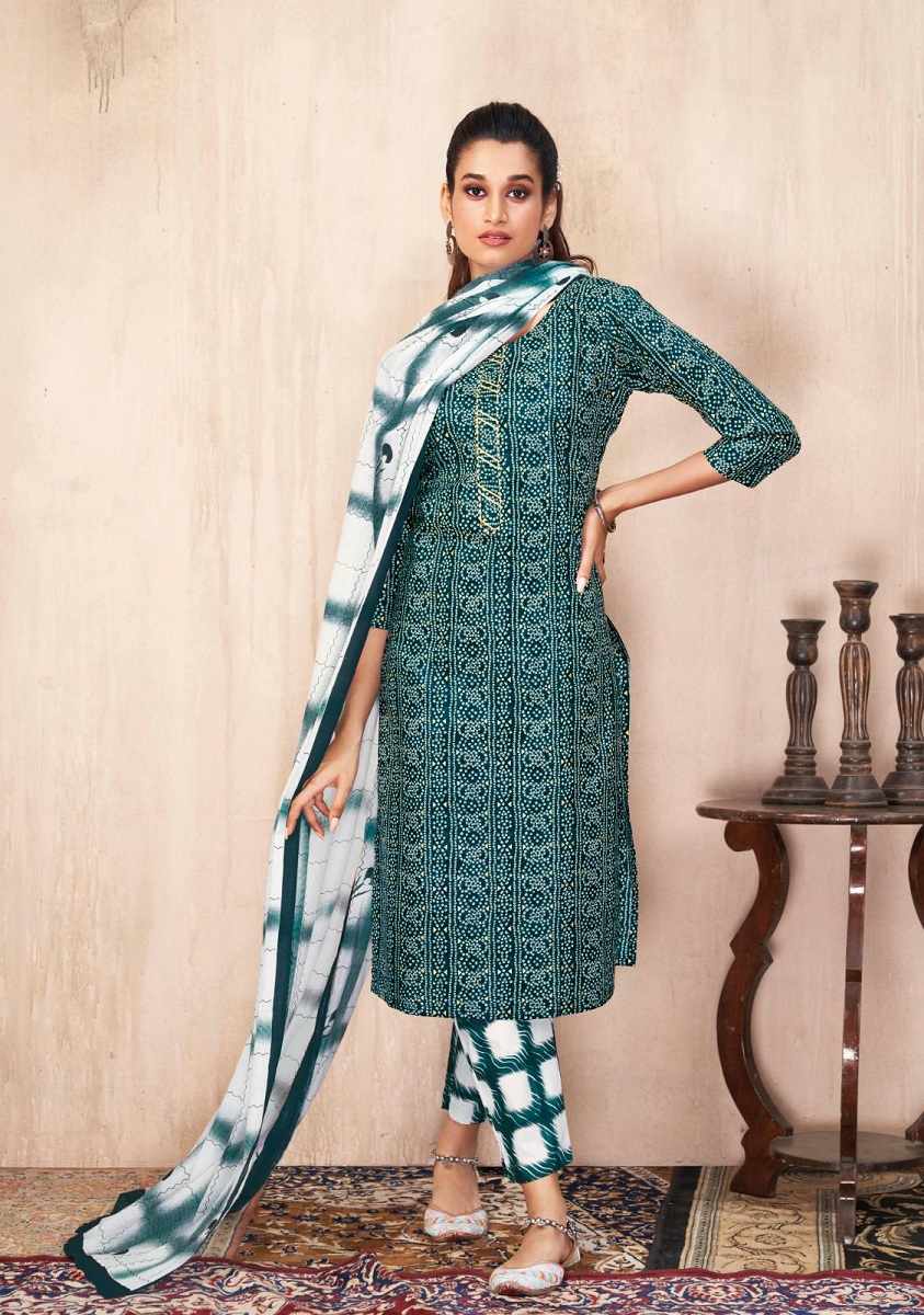 Suryajyoti Bandhani Lehriya Vol 4 Kurti Pant With Dupatta Readymade Dress In Wholesale