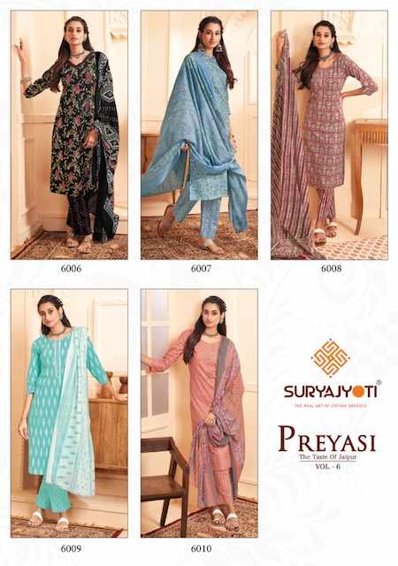 Suryajyoti Preyashi Vol 6 Kurti Pant With Dupatta Readymade Dress In Wholesale