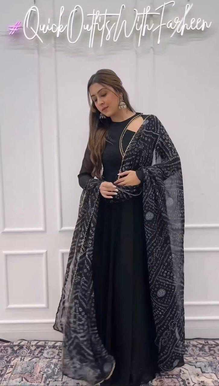 Fabric:- Georgette with maxy gown With print frill with print Dupptta