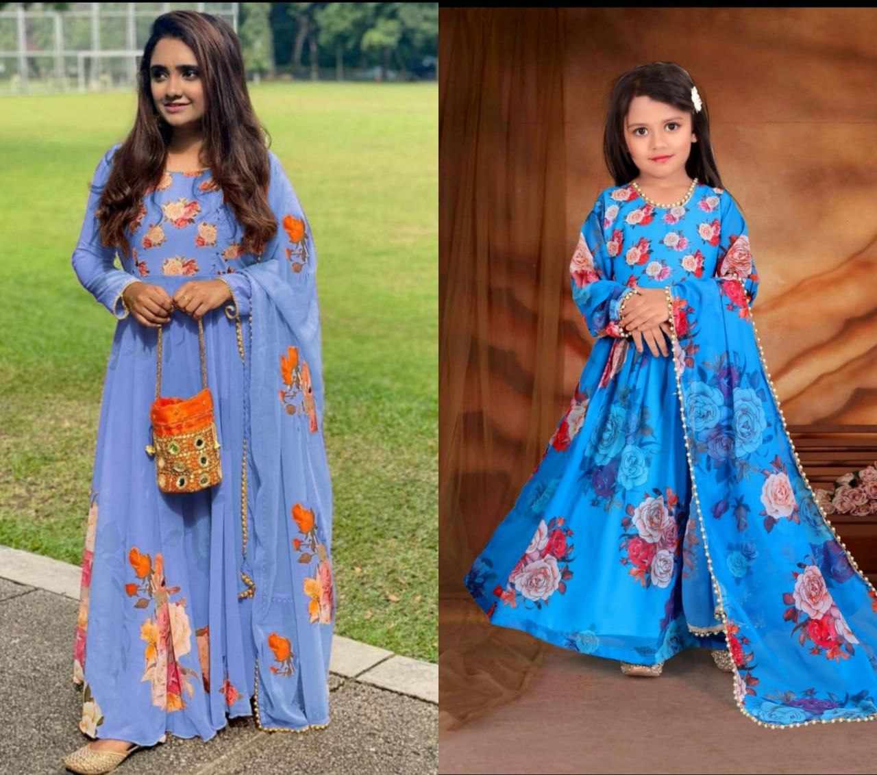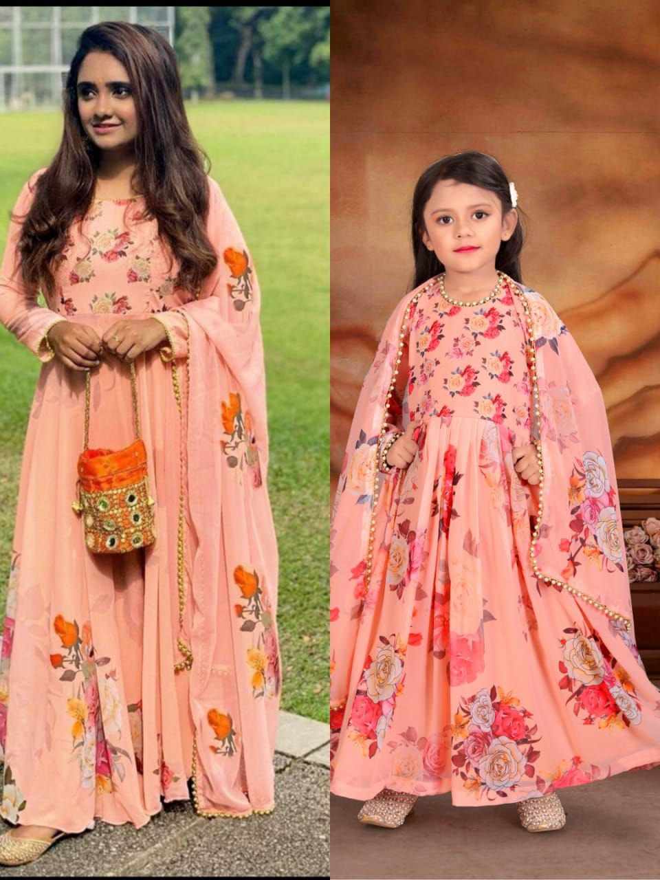 *DUPTTA:GEORGEET FLORAL DIGITAL PRINT DESIGN WITH PEARLS LACE BORDER *