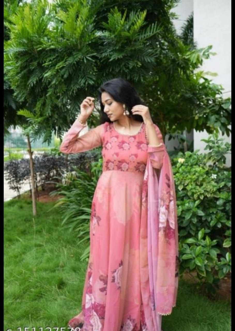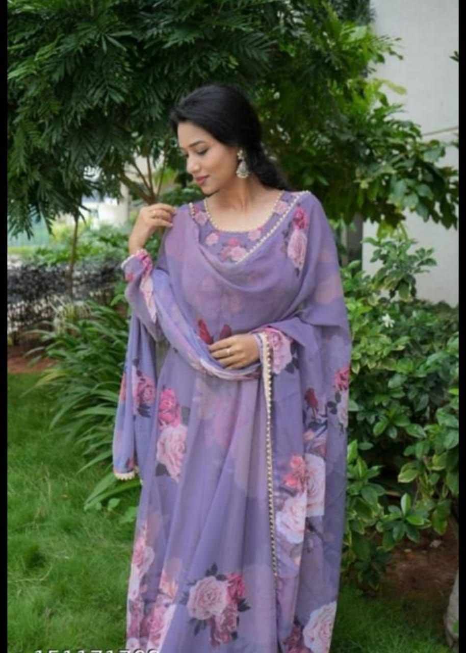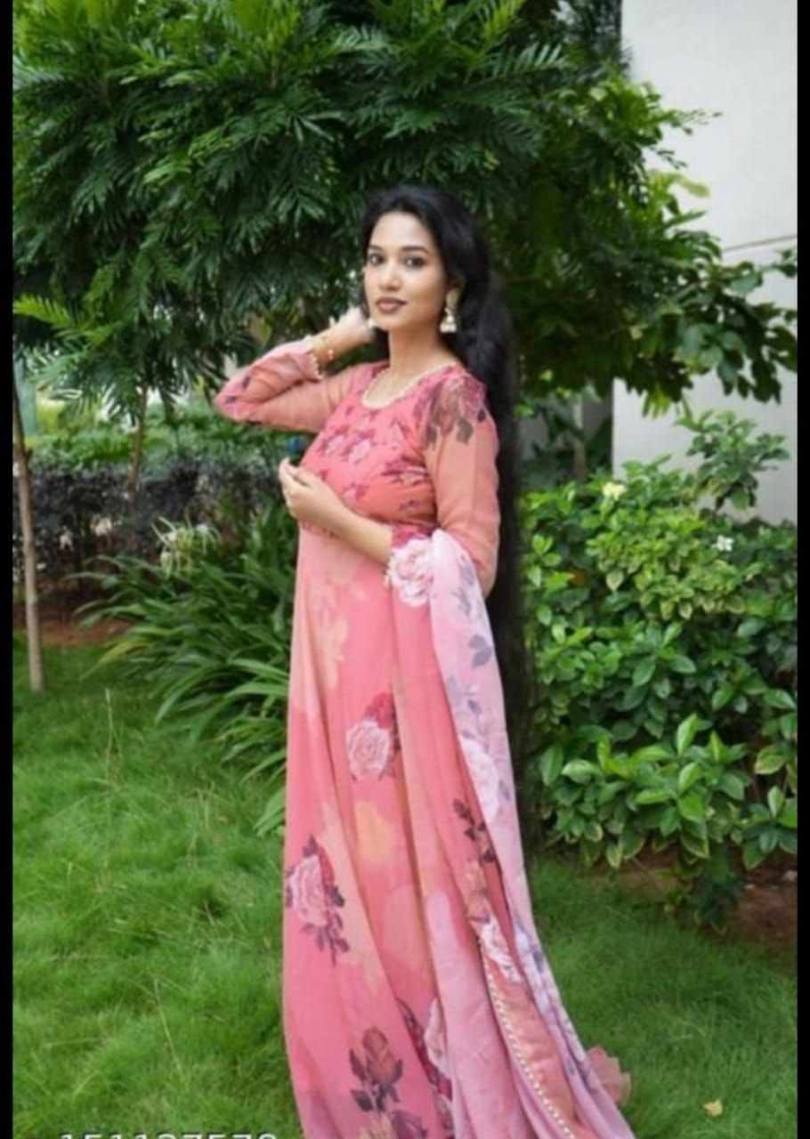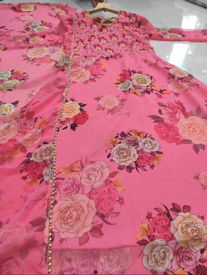 *FABRIC: GEORGEET WITH FLORAL DESIGN PRINT DESIGN WORK WITH PEARL BORDER*