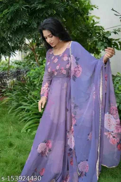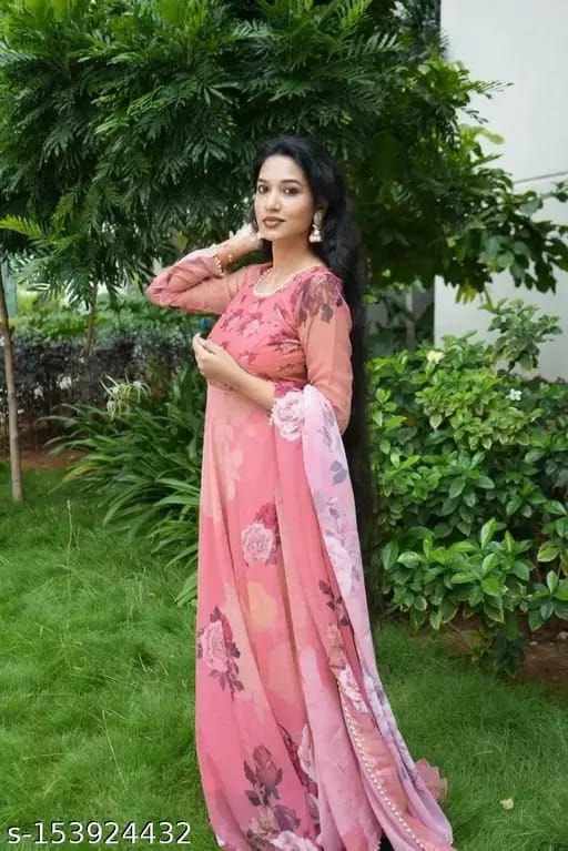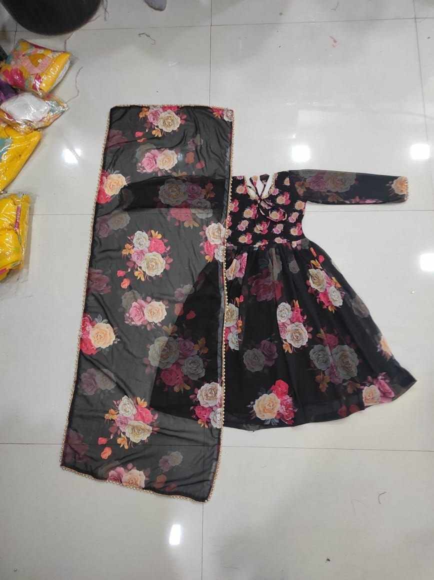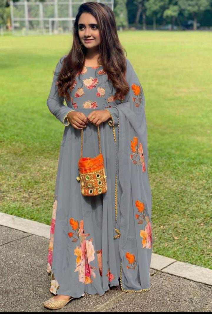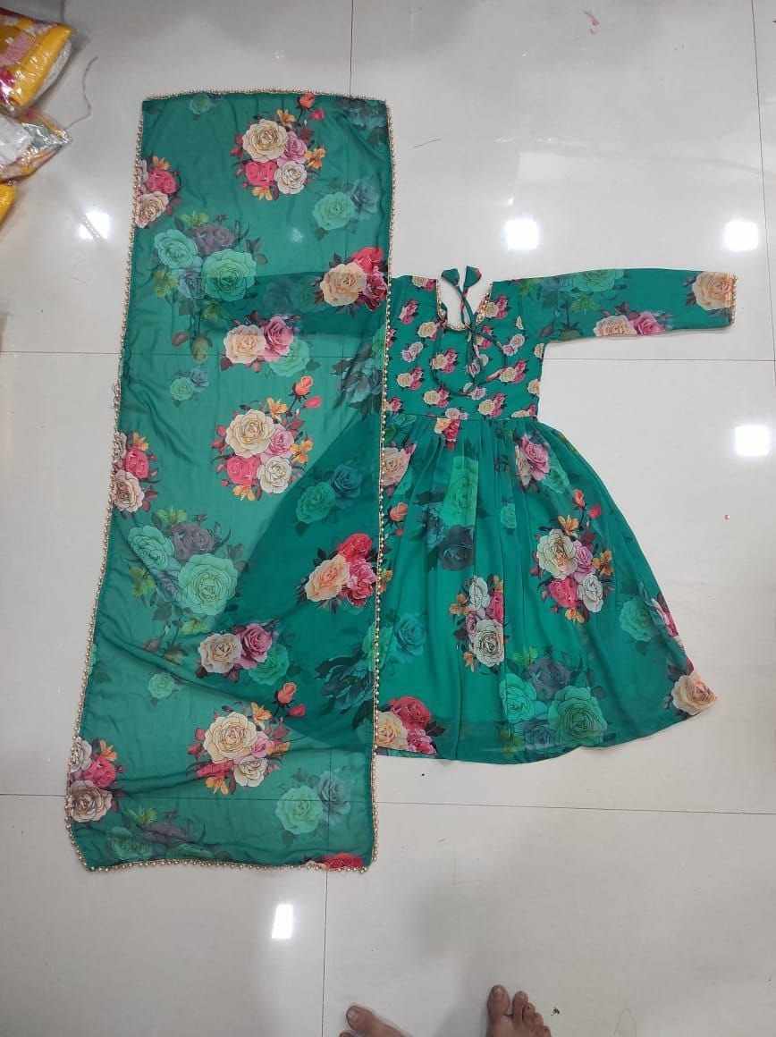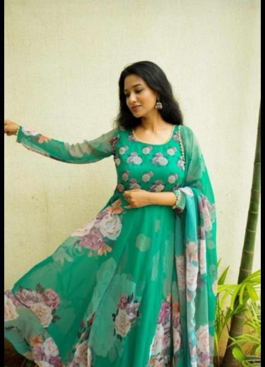 *FABRIC: GEORGEET WITH FLORAL DESIGN PRINT DESIGN WORK WITH PEARL BORDER*