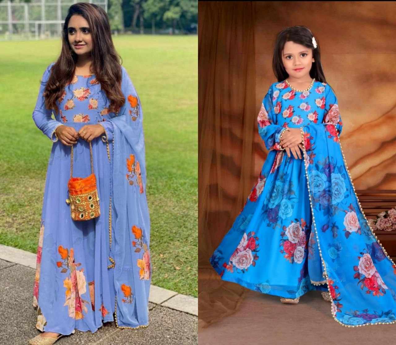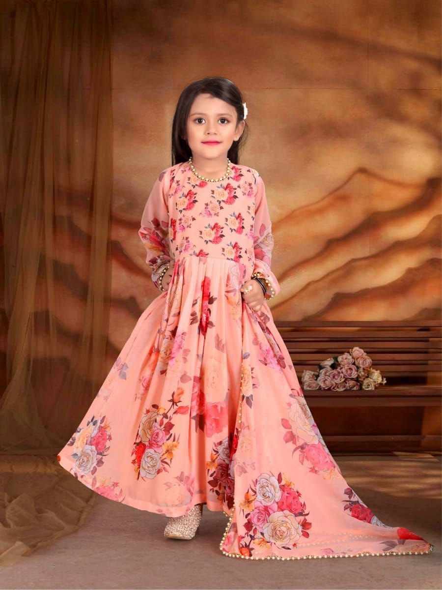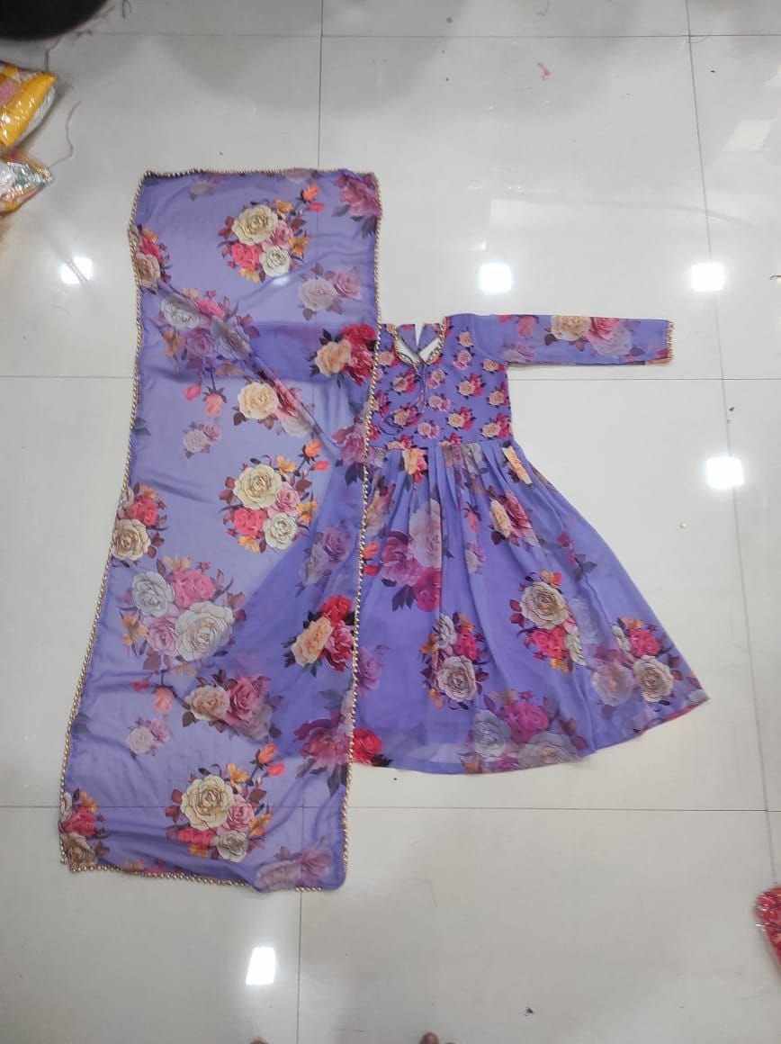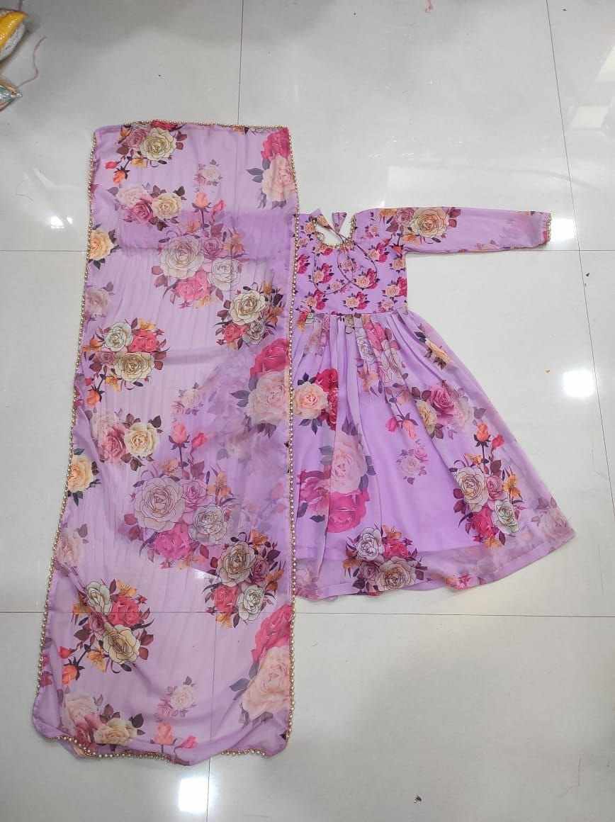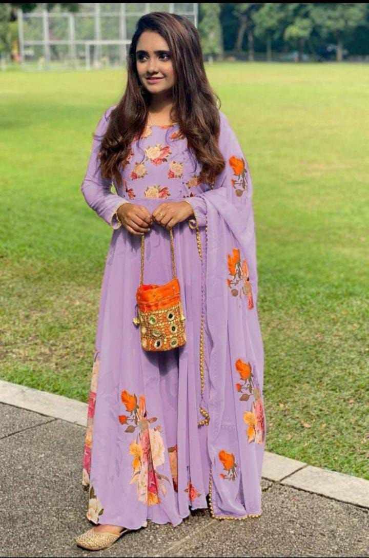 *FABRIC: GEORGEET WITH FLORAL DESIGN PRINT DESIGN WORK WITH PEARL BORDER*