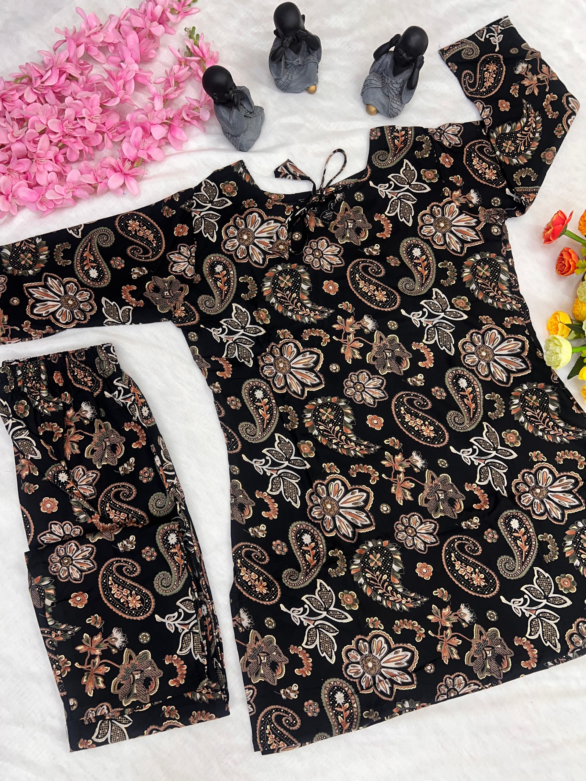Name : WM 24 Black Pure Soft Rayon Cotton Co-ord Set
